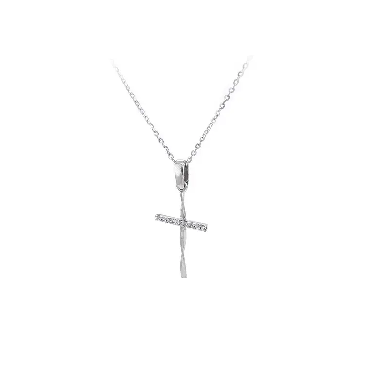 Mặt dây chuyền vàng hình thánh giá đính đá zircon
