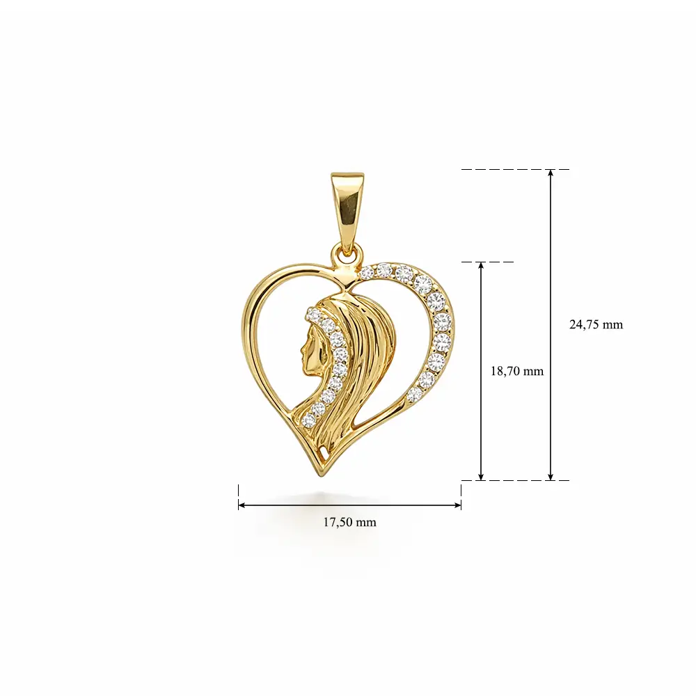 Mặt dây chuyền vàng Madonna trong hình trái tim đính zirconia