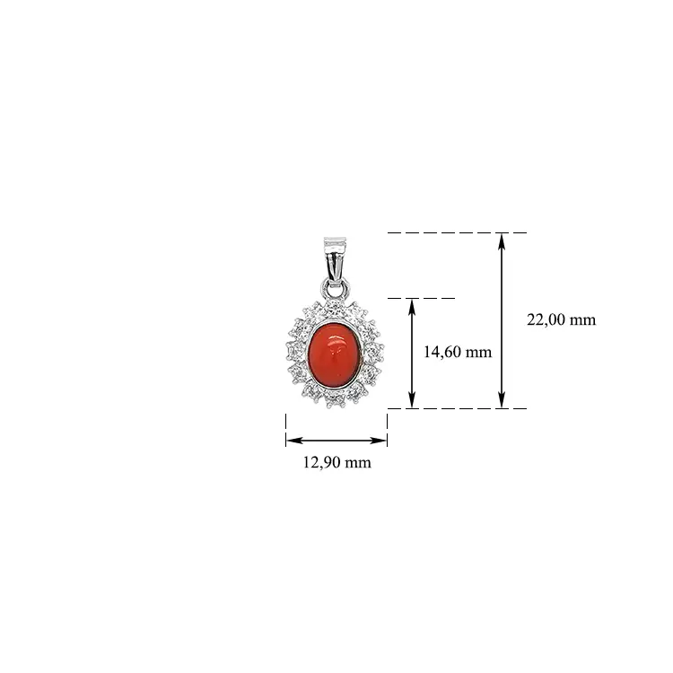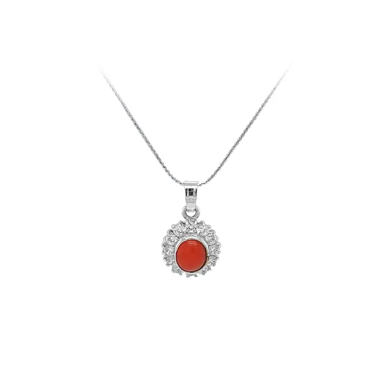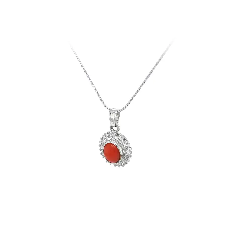 Mặt dây chuyền với san hô và đá zircon trắng vàng