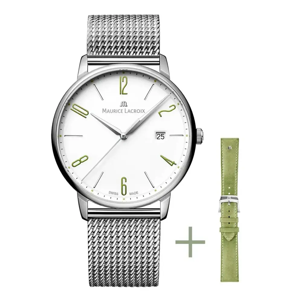 Maurice Lacroix Eliros Date 40mm Strap Set EL1118-SS00S-120-D là sự kết hợp hoàn hảo giữa sự thanh lịch, tính thực dụng và độ chính xác Thụy Sĩ. Thuộc bộ sưu tập Eliros, mẫu đồng hồ này dành cho cả nam và nữ yêu thích phong cách tinh tế, đi kèm bộ quà tặng với dây đeo thay thế tiện lợi.