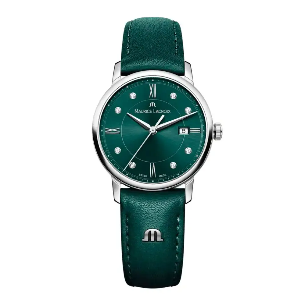 Đồng hồ Maurice Lacroix Eliros Date 30mm (ref. EL1094-SS001-650-5) là sự kết hợp hoàn hảo giữa sự thanh lịch, thiết kế hiện đại và độ chính xác Thụy Sĩ. Vỏ thép không gỉ 30 mm với đường nét mềm mại, kích thước lý tưởng cho cổ tay nữ, mang đến vẻ đẹp tinh tế và sang trọng.