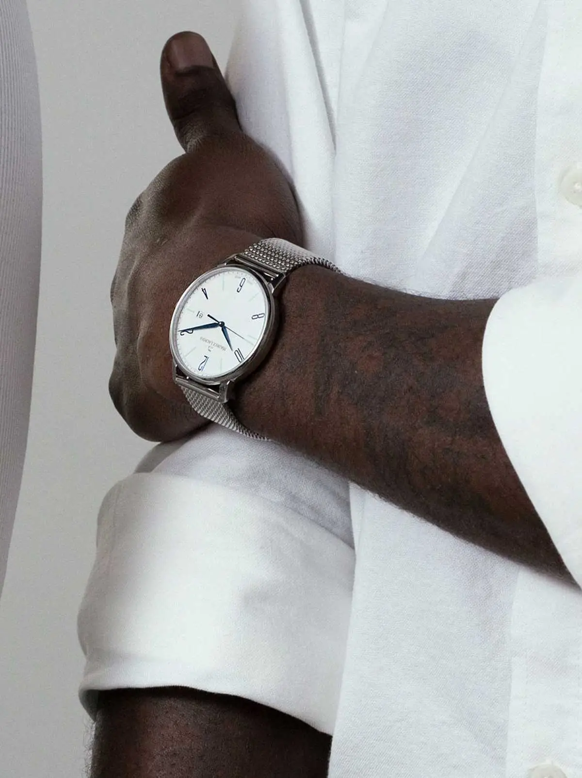 Được trang bị bộ máy quartz Ronda 515 chính xác và bền bỉ, đồng hồ đi kèm dây thép mắt lưới kiểu Milan khóa trượt và khả năng chống nước 50 m (5 ATM). Eliros Date là lựa chọn lý tưởng cho những ai yêu thích phong cách tối giản, chất lượng Thụy Sĩ và sự tinh tế hàng ngày.