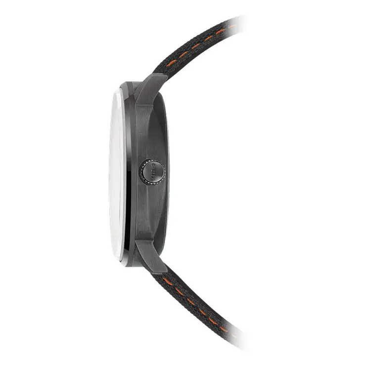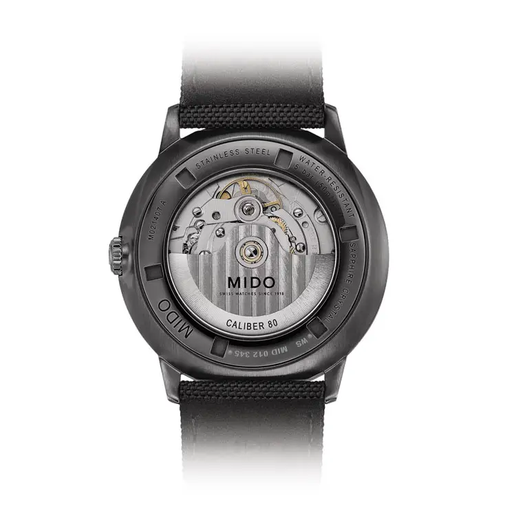 Đồng hồ Mido Commander Gradient gây ấn tượng với thiết kế hiện đại và táo bạo, kết hợp phong cách thể thao với tay nghề chế tác chính xác của Thụy Sĩ. Vỏ tròn đường kính 40 mm được làm từ thép phủ PVD đen, mang lại vẻ ngoài mạnh mẽ và tăng độ bền chống mài mòn. Mặt kính sapphire đảm bảo bảo vệ mặt số và dễ đọc.