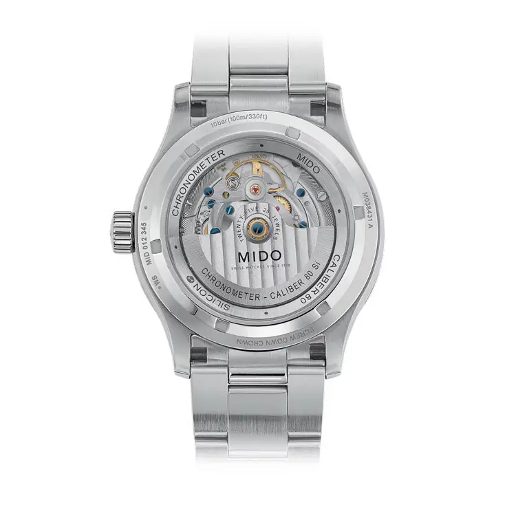 Đồng hồ Mido Multifort Chronometer 1 gây ấn tượng với vẻ ngoài thể thao hiện đại và độ chính xác cao, được chứng nhận bởi viện COSC Thụy Sĩ. Vỏ tròn được chế tác từ thép không gỉ chất lượng cao và được bảo vệ bởi mặt kính sapphire bền bỉ, đảm bảo khả năng đọc rõ ràng và chống xước.