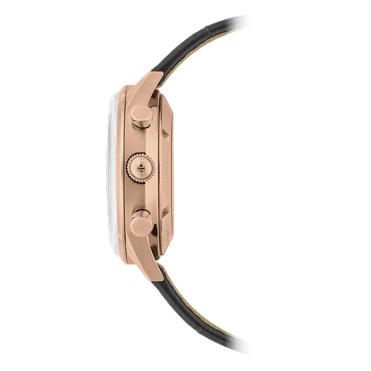 Hoàn thiện thiết kế là dây đeo da màu đen thanh lịch với khóa chốt cổ điển, mang lại sự thoải mái và an toàn khi đeo. Với khả năng chống nước 5 ATM (50 mét), đồng hồ phù hợp để đeo hàng ngày và tiếp xúc nước nhẹ.