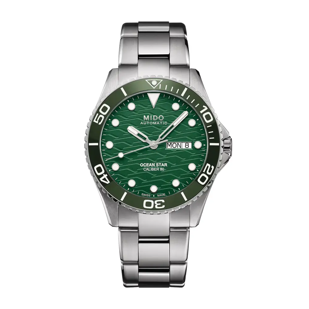 Mido Ocean Star 200C M042.430.11.091.00 là sự kết hợp hoàn hảo giữa độ bền, hiệu suất và phong cách hiện đại. Mẫu đồng hồ Thụy Sĩ này thuộc bộ sưu tập Ocean Star, được thiết kế cho người đàn ông năng động yêu thích sự chính xác và thanh lịch. Mặt số màu xanh lá cây ánh sunray mang lại chiều sâu tinh tế, trong khi vành bezel bằng gốm tôn lên phong cách thể thao mạnh mẽ.
