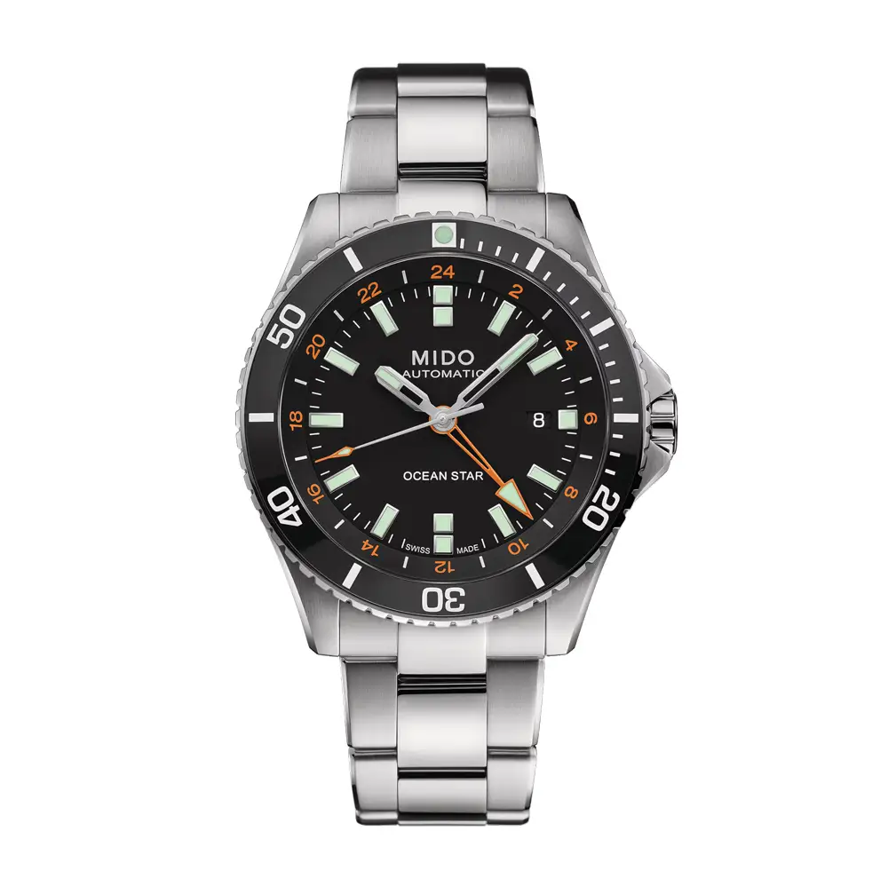 Đồng hồ Mido Ocean Star GMT là sự kết hợp hoàn hảo giữa chức năng thể thao và thiết kế thanh lịch, lý tưởng không chỉ dành cho người yêu du lịch. Vỏ tròn chắc chắn đường kính 44 mm được làm từ thép không gỉ chất lượng cao và được bảo vệ bởi mặt kính sapphire bền bỉ, đảm bảo độ bền cao và dễ đọc.