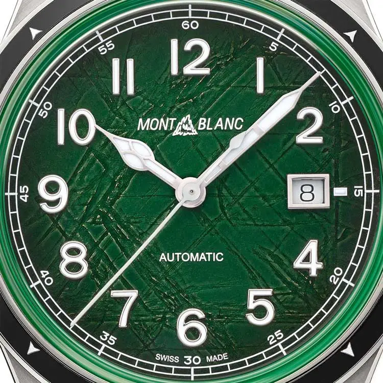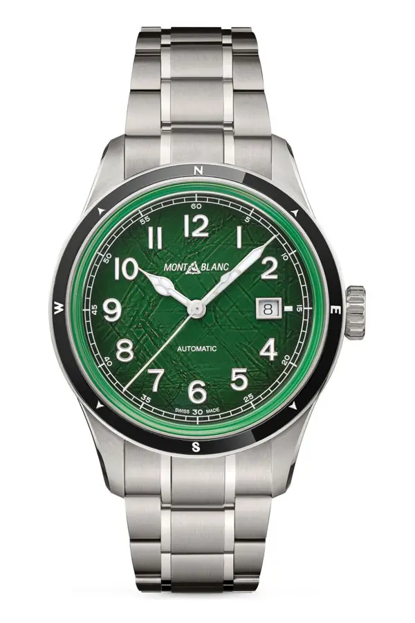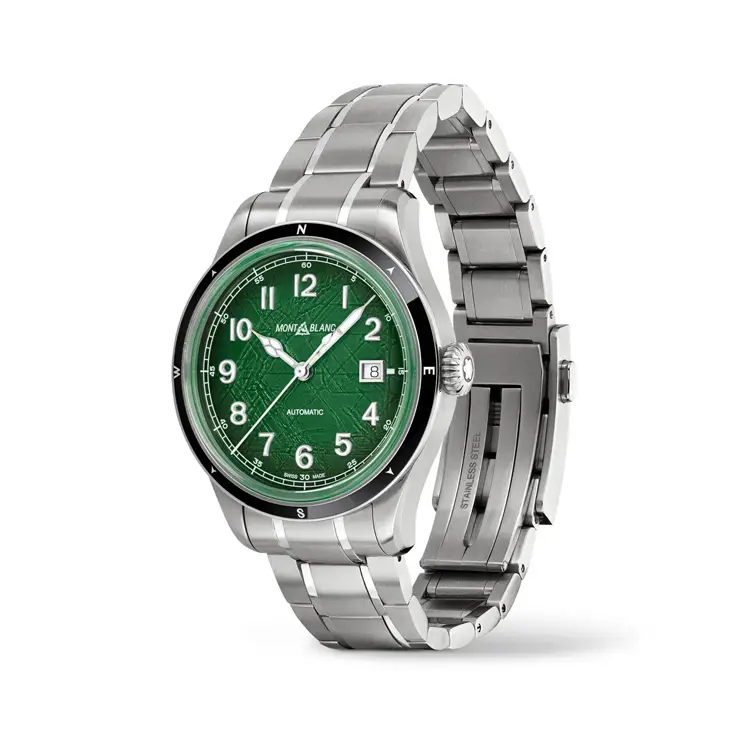 Montblanc 1858 Automatic Date 0 Oxygen 133269 kết hợp giữa độ chính xác kỹ thuật và tinh thần phiêu lưu. Vỏ tròn bằng thép không gỉ đường kính 41 mm được trang bị vành bezel bằng gốm bền bỉ và mặt kính sapphire, mang lại khả năng đọc giờ tối ưu ngay cả trong điều kiện khắc nghiệt. Mặt số màu xanh lá nổi bật gợi nhớ đến thiên nhiên, có thêm lịch ngày tại vị trí 3 giờ.