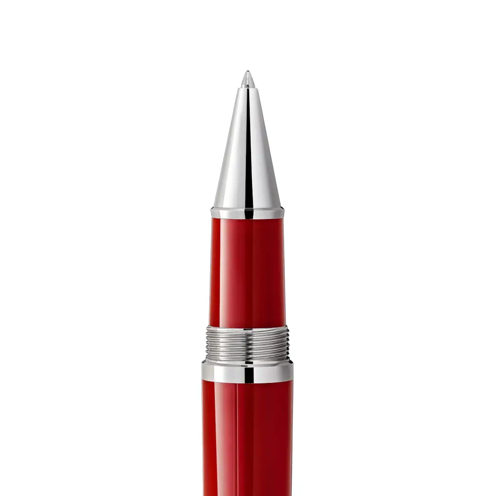 Thân và nắp bút bằng nhựa cao cấp màu đỏ Rosso 70 Anni tượng trưng cho màu sắc biểu tượng của Ferrari và ý nghĩa lịch sử của nó. Bề mặt mịn, bóng gợi liên tưởng đến lớp sơn xe thể thao, tạo nên vẻ ngoài mạnh mẽ và nổi bật. Phần đỉnh nắp được trang trí bằng biểu tượng Montblanc trên nền vàng, lấy cảm hứng từ huy hiệu Modena.