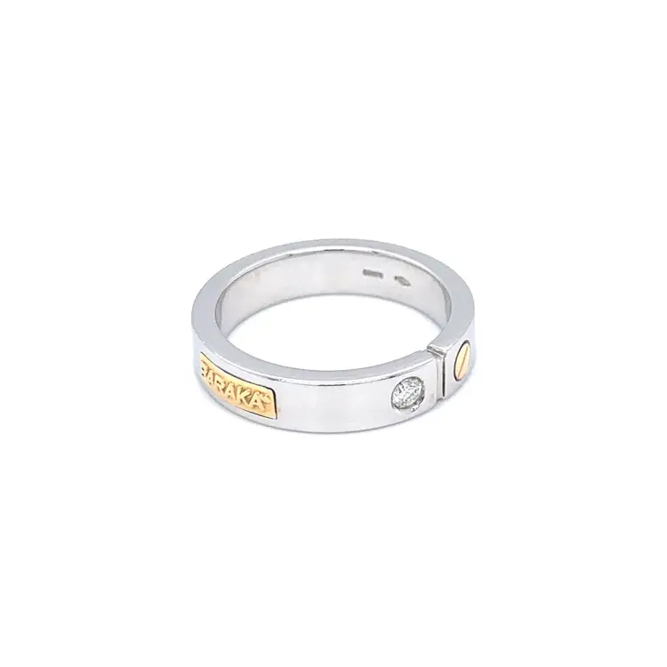 Chiếc nhẫn Baraka với kim cương trắng là món trang sức thanh lịch và vượt thời gian dành cho những ai trân trọng sự sang trọng tinh tế. Chế tác từ vàng kết hợp 18K (750/1000) với bề mặt đánh bóng, nó tôn lên nét tinh khiết trong thiết kế.