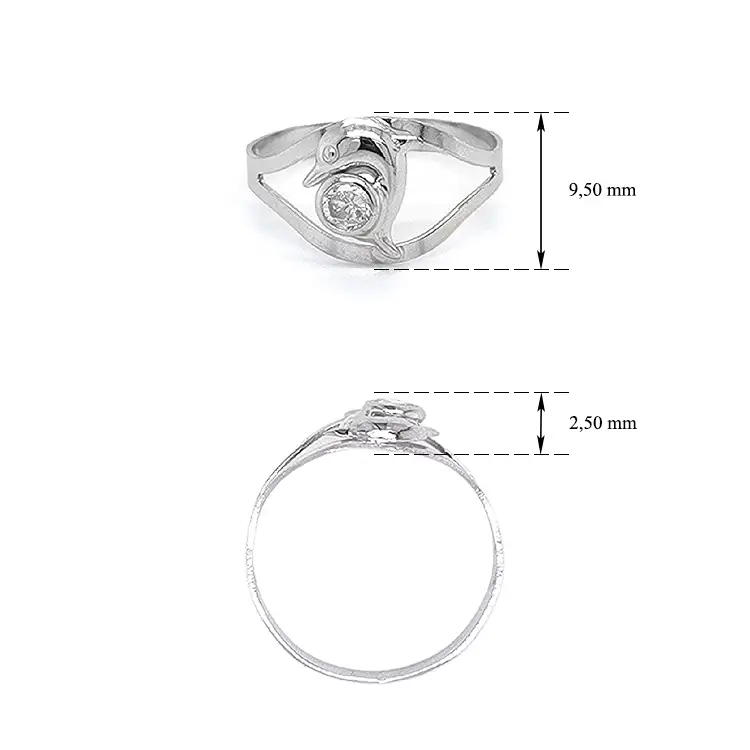 Nhẫn cá heo với vàng trắng và zircon trắng