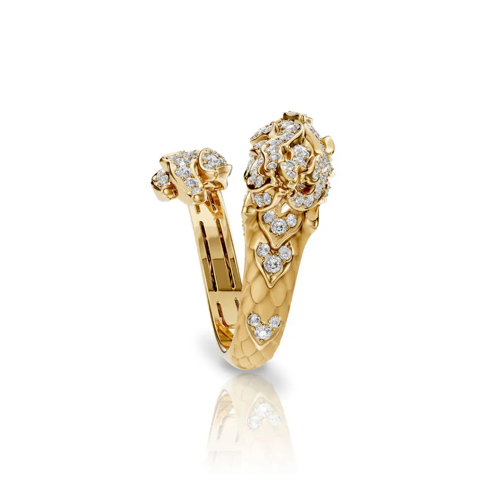 Nhẫn Carrera y Carrera New Shanghai Maxi Pavé là một tác phẩm trang sức lộng lẫy kết hợp sức mạnh của rồng với sự tinh xảo của nghệ thuật thủ công. Chiếc nhẫn vàng 18k vàng này là biểu tượng huyền thoại của sức mạnh, sự bảo vệ và may mắn, được thể hiện một cách sang trọng nhất.