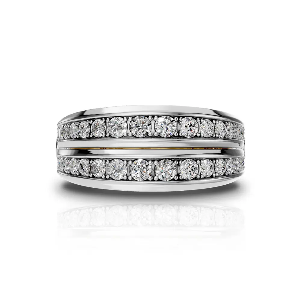 Nhẫn được đính kim cương tổng 0,93 ct, tạo độ lấp lánh nổi bật. Gia công chất lượng cao đảm bảo độ bền lâu dài.