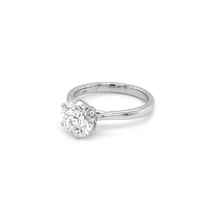 Chiếc nhẫn đính hôn bằng vàng trắng từ Beny Jewellery là biểu tượng của tình yêu thuần khiết và vẻ đẹp vượt thời gian. Được chế tác từ vàng trắng 18 kt (750/1000) với lớp đánh bóng sáng gương, chiếc nhẫn mang lại sự cân đối hoàn hảo giữa tinh tế và mạnh mẽ. Tâm điểm là viên kim cương tự nhiên 2,00 ct cắt tròn cổ điển, tỏa sáng lấp lánh.