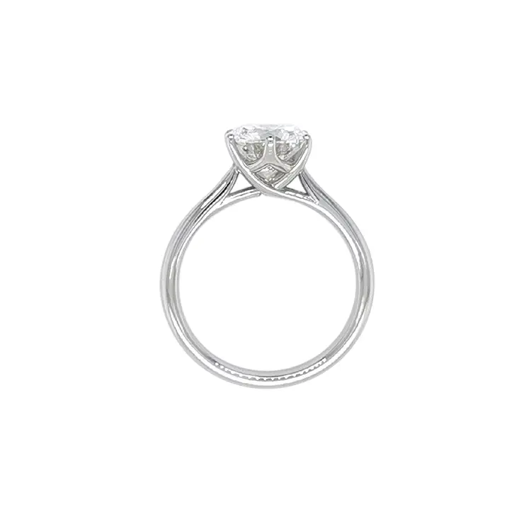 Viên kim cương kích thước 8,11 × 8,16 × 4,91 mm, độ trong VVS2, màu G, mang đến ánh sáng rực rỡ và thuần khiết. Mỗi chi tiết của chiếc nhẫn đều được chế tác thủ công tỉ mỉ nhằm tôn vinh vẻ đẹp của viên đá quý – biểu tượng của tình yêu, lòng trung thành và vĩnh cửu.