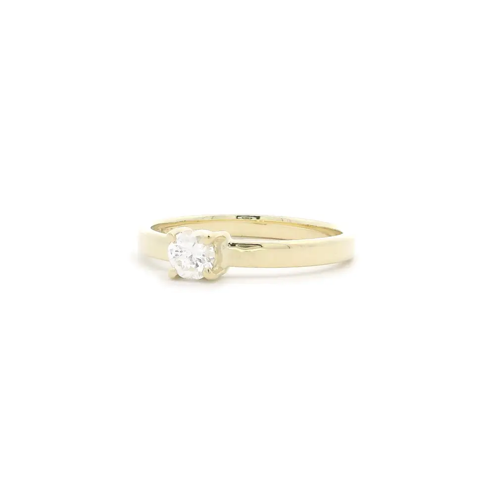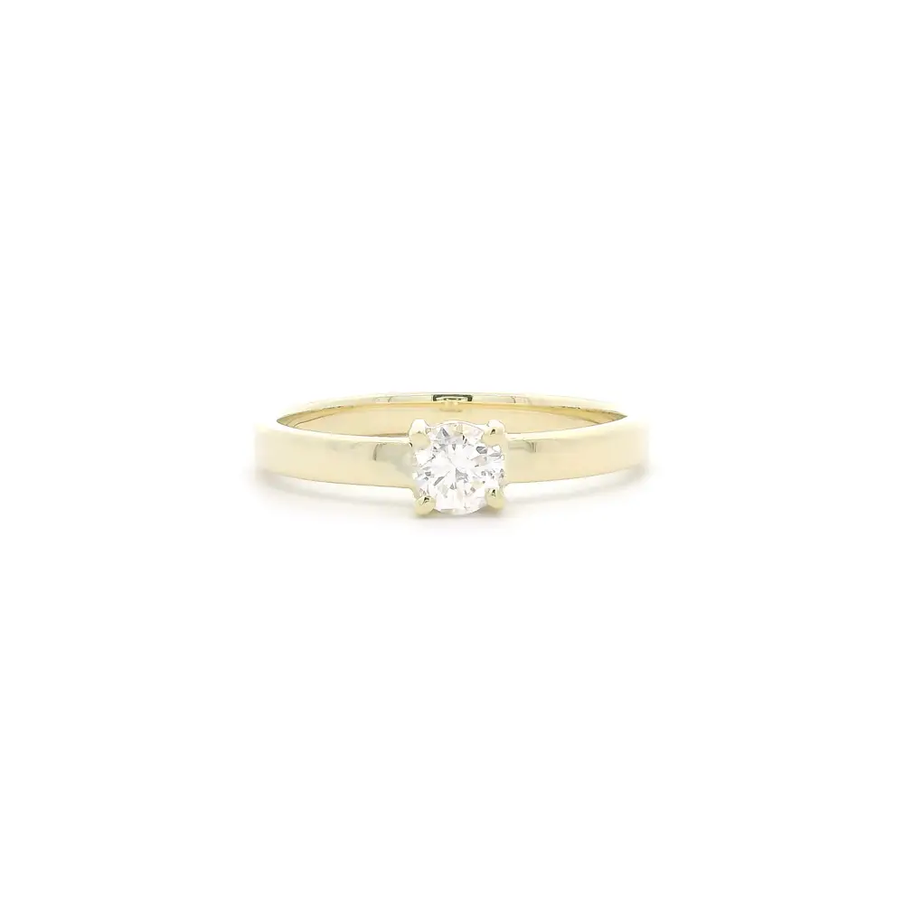 Sự kết hợp giữa vàng vàng và kim cương solitaire cổ điển biến chiếc nhẫn này trở thành lựa chọn lý tưởng cho lễ đính hôn – một biểu tượng của sự gắn bó trọn đời.