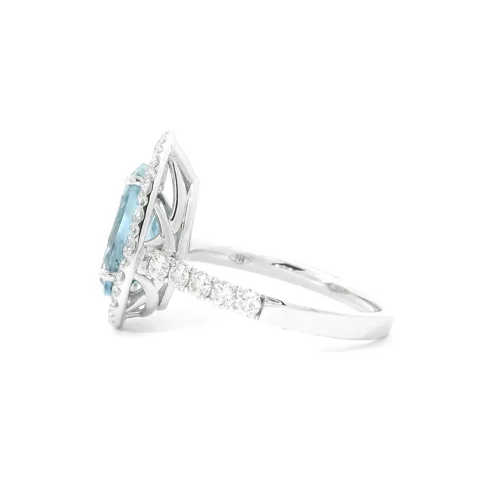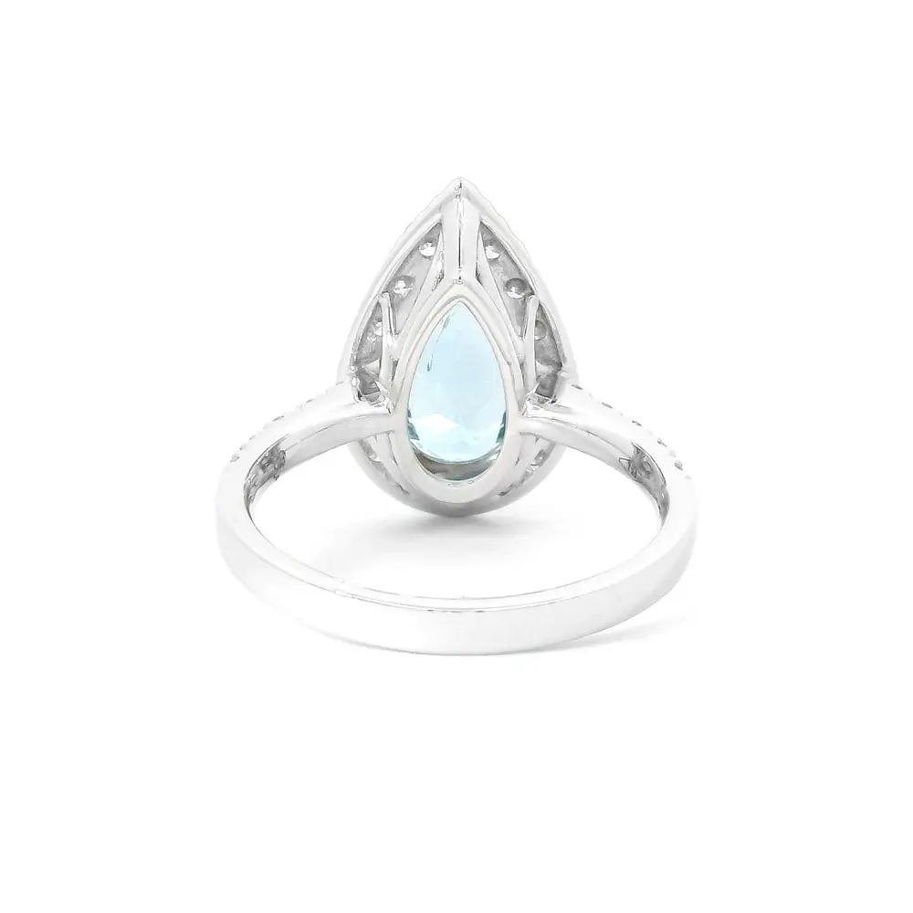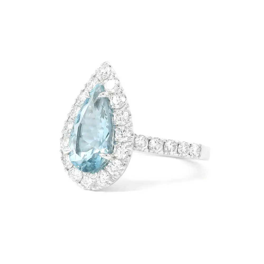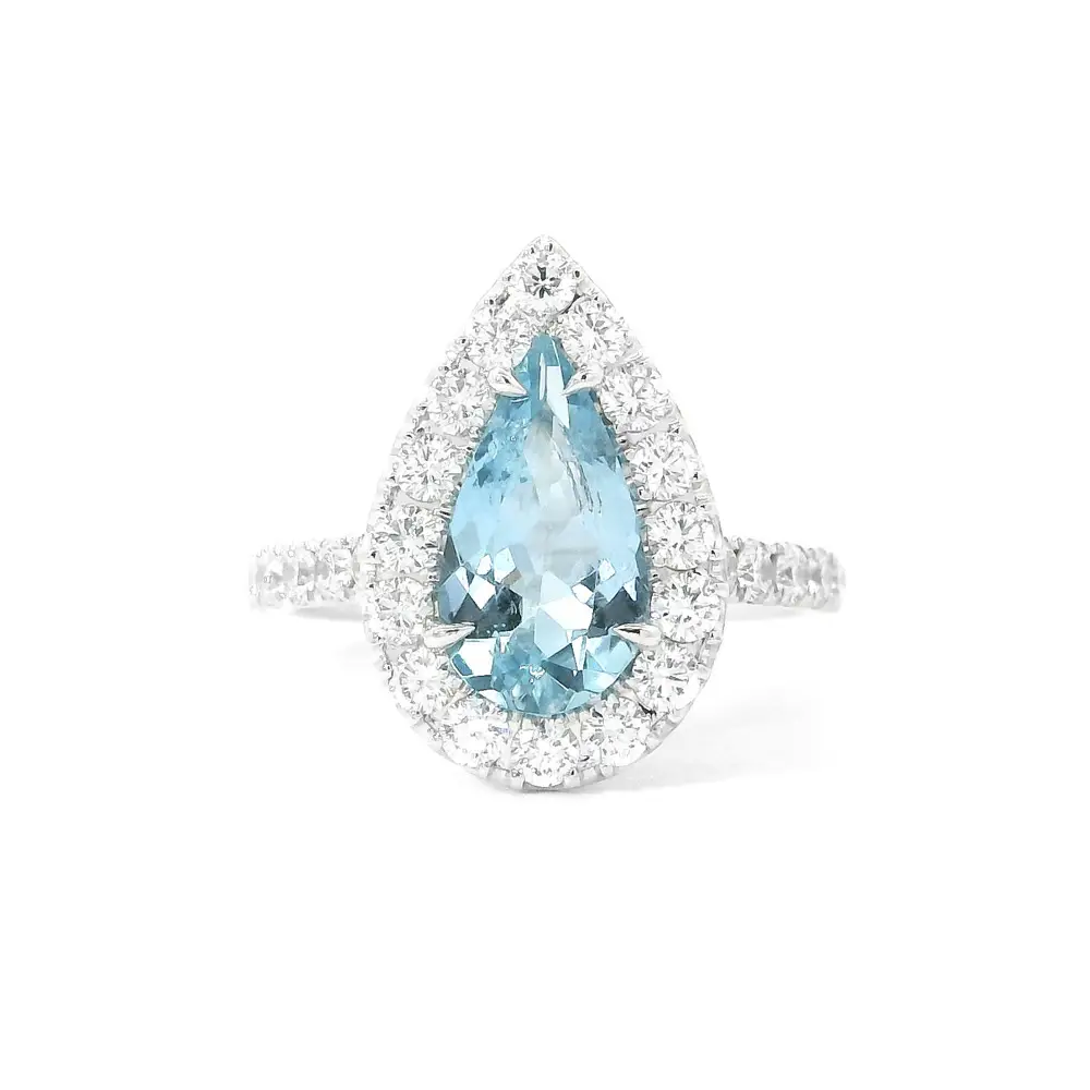 Nhẫn hình giọt nước cao cấp với đá aquamarine và kim cương