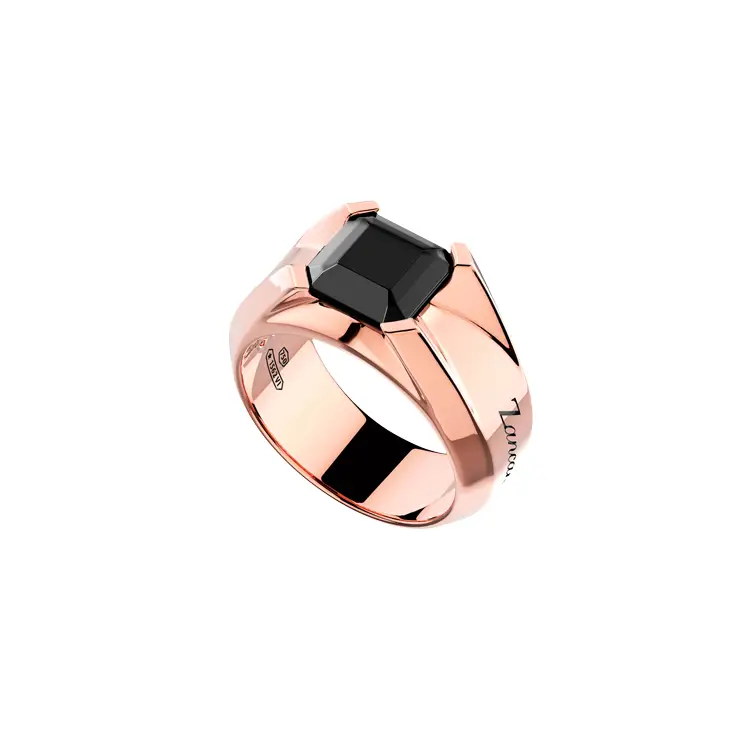 Zancan 6000047 là nhẫn nam cá tính mạnh, kết hợp thiết kế Ý hiện đại với tay nghề tinh xảo. Chế tác từ vàng hồng 18kt (750/1000) hoàn thiện đánh bóng; dáng nhấn viên đá lớn đem lại vẻ tự tin, thu hút từ trang phục thường ngày đến trang trọng.