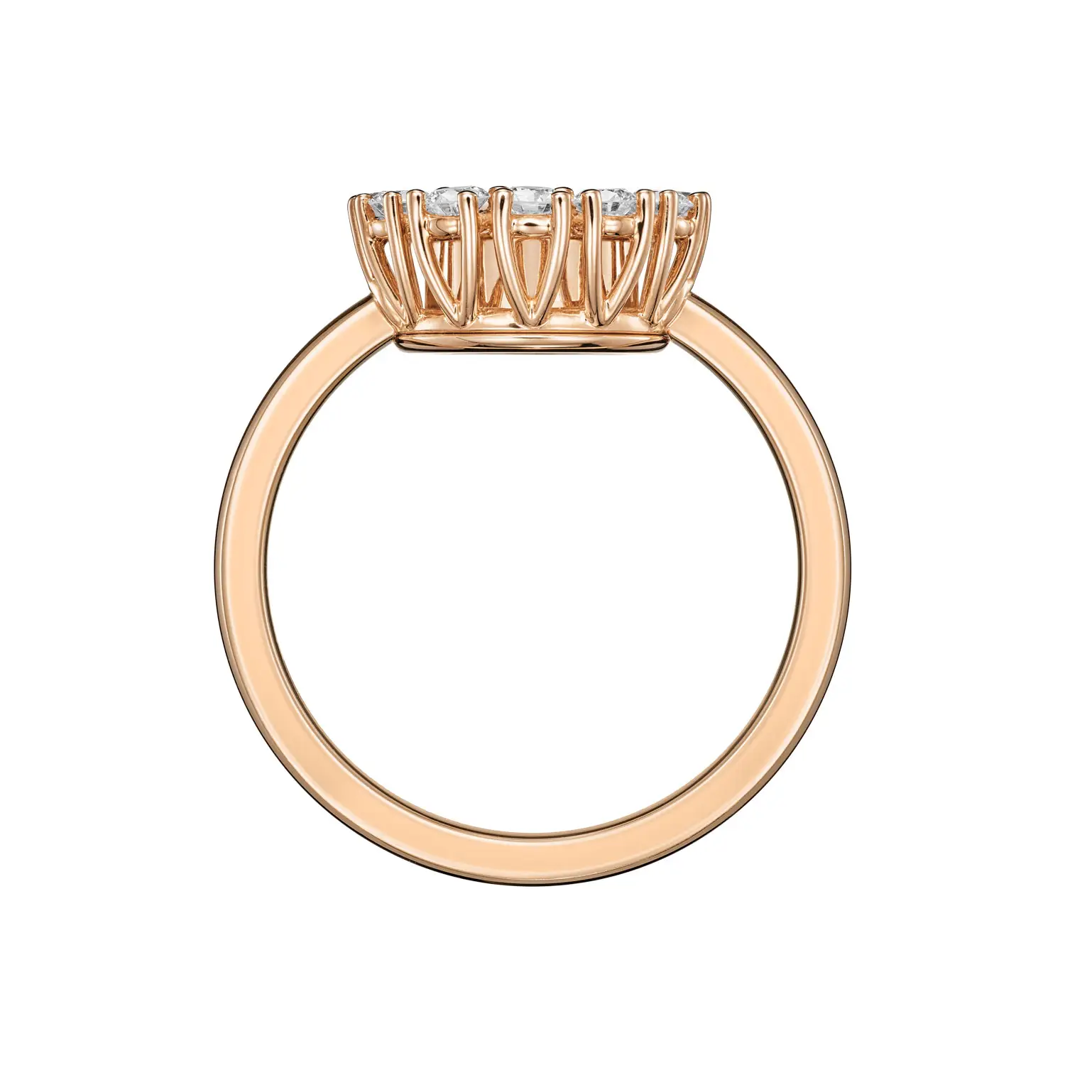 Chiếc nhẫn thuộc bộ sưu tập Happy Diamonds Icons được chế tác từ vàng hồng ethical 18 carat, mang lại vẻ ấm áp và tinh tế. Tâm điểm thiết kế là biểu tượng đặc trưng của Chopard — những viên kim cương chuyển động tự do giữa hai lớp kính sapphire. Chuyển động nhẹ nhàng của chúng tạo nên hiệu ứng ánh sáng sống động, biểu trưng cho niềm vui, sự tự do và nét thanh lịch đầy tinh nghịch.