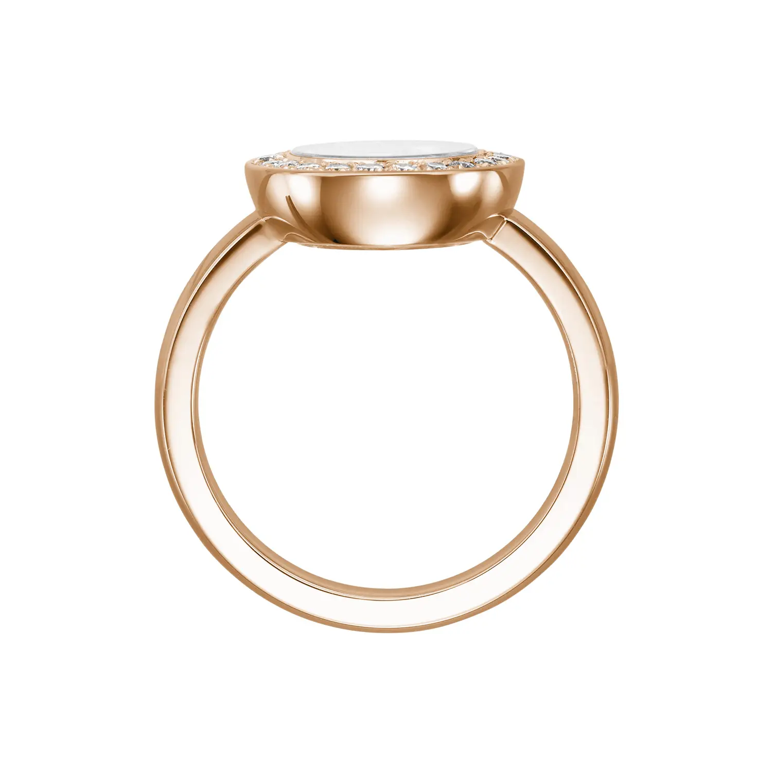 Từng chi tiết phản ánh tay nghề kim hoàn Thụy Sĩ tinh xảo của Chopard – từ lớp vàng hồng được đánh bóng hoàn hảo đến kim cương tổng trọng lượng 0,19 ct, màu F-G, độ trong IF-VVS. Tỷ lệ cân đối và ánh sáng rực rỡ tôn vinh vẻ đẹp thanh lịch vượt thời gian.