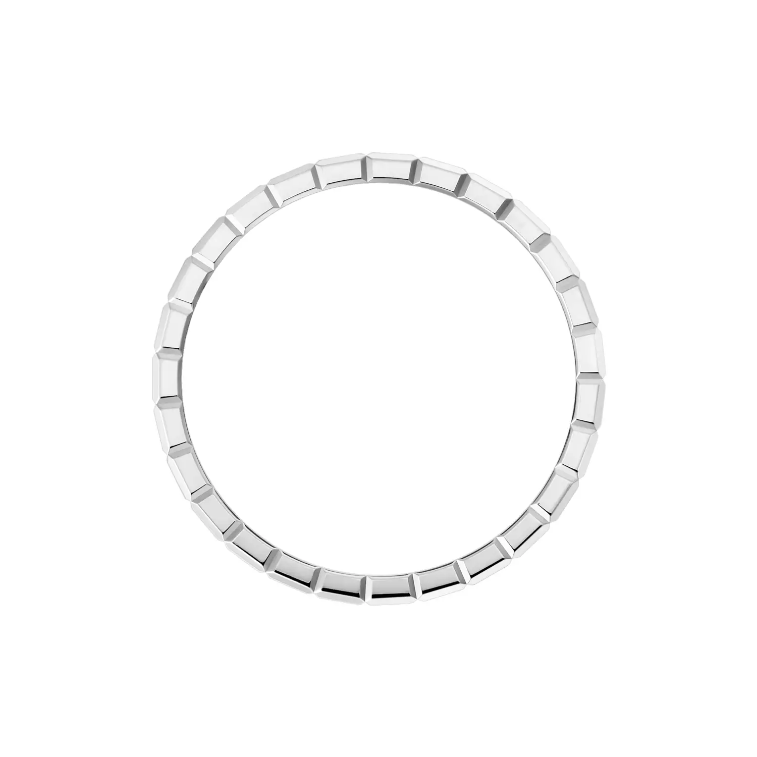 Chiếc nhẫn Chopard Ice Cube Pure được chế tác từ vàng trắng 18k có nguồn gốc đạo đức, là biểu tượng của sự thanh lịch hiện đại và nét xa hoa tối giản. Thiết kế hình khối lập phương mang tính biểu tượng được nạm một nửa vòng bằng kim cương tổng trọng lượng khoảng 0,11 ct, tạo nên ánh sáng lấp lánh tinh tế, tôn lên tay nghề thủ công hoàn hảo của Chopard. Các bề mặt được đánh bóng hoàn hảo phản chiếu ánh sáng trong suốt như pha lê, làm nổi bật vẻ đẹp kiến trúc đặc trưng của bộ sưu tập Ice Cube.