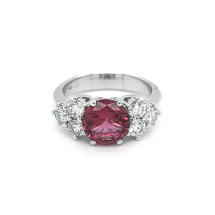 Nhẫn vàng đính đá spinel đỏ và kim cương