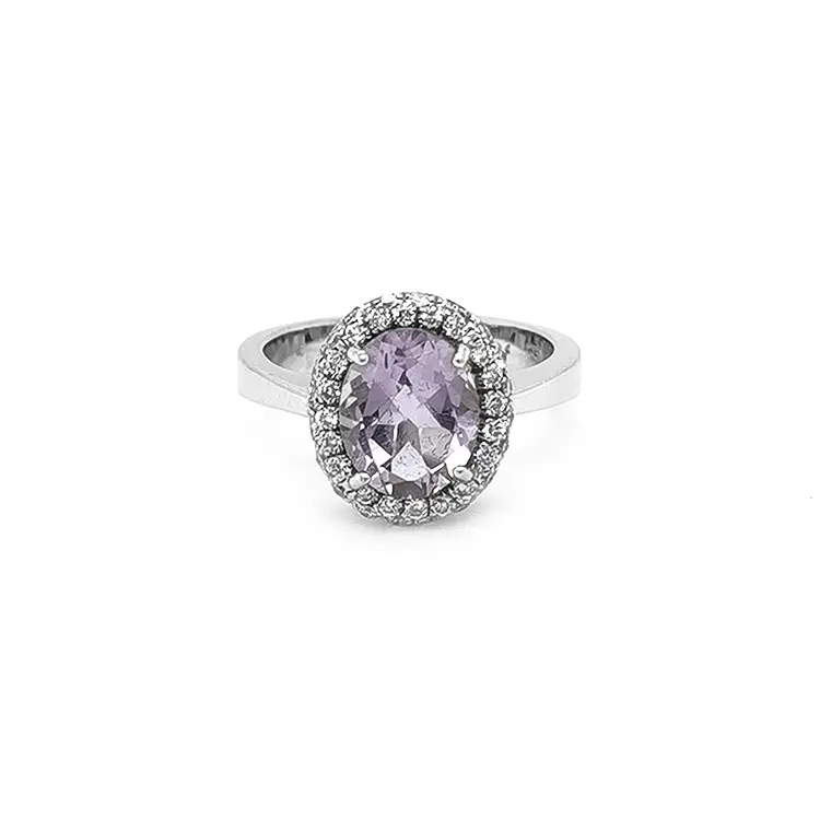 Nhẫn vàng đính đá thạch anh tím và kim cương