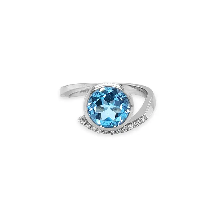 Nhẫn vàng đính đá topaz xanh và kim cương
