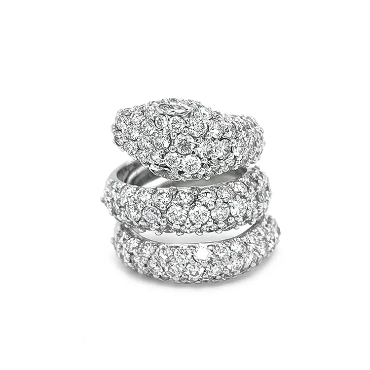 Chiếc nhẫn kim cương của Beny Jewellery là kiệt tác của nghệ thuật chế tác trang sức cao cấp, tượng trưng cho sự sang trọng, quyền lực và vẻ đẹp vượt thời gian. Được chế tác từ vàng trắng 18 kt (750/1000) với lớp đánh bóng sáng gương, chiếc nhẫn tỏa sáng như quầng sáng trên tay.