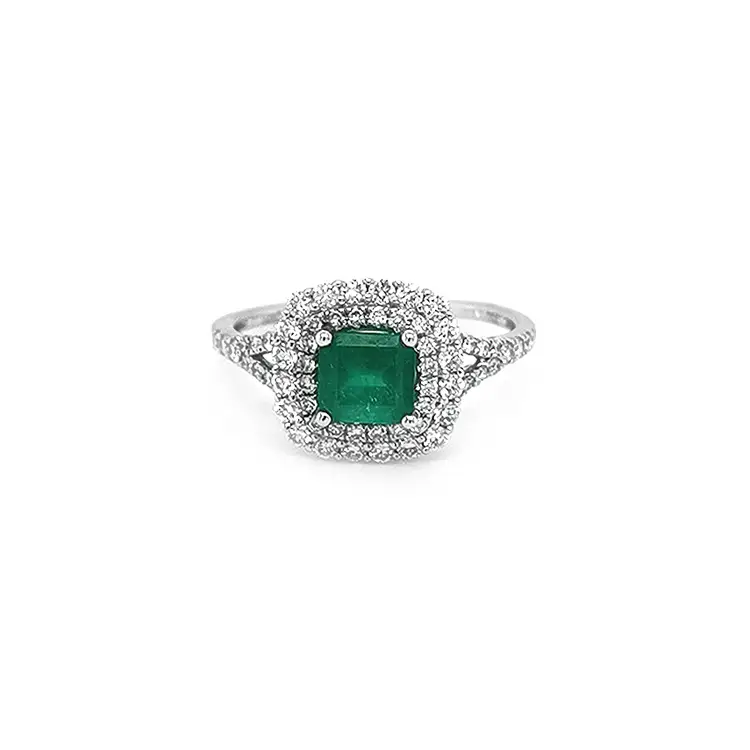 Nhẫn vàng đính ngọc lục bảo và kim cương