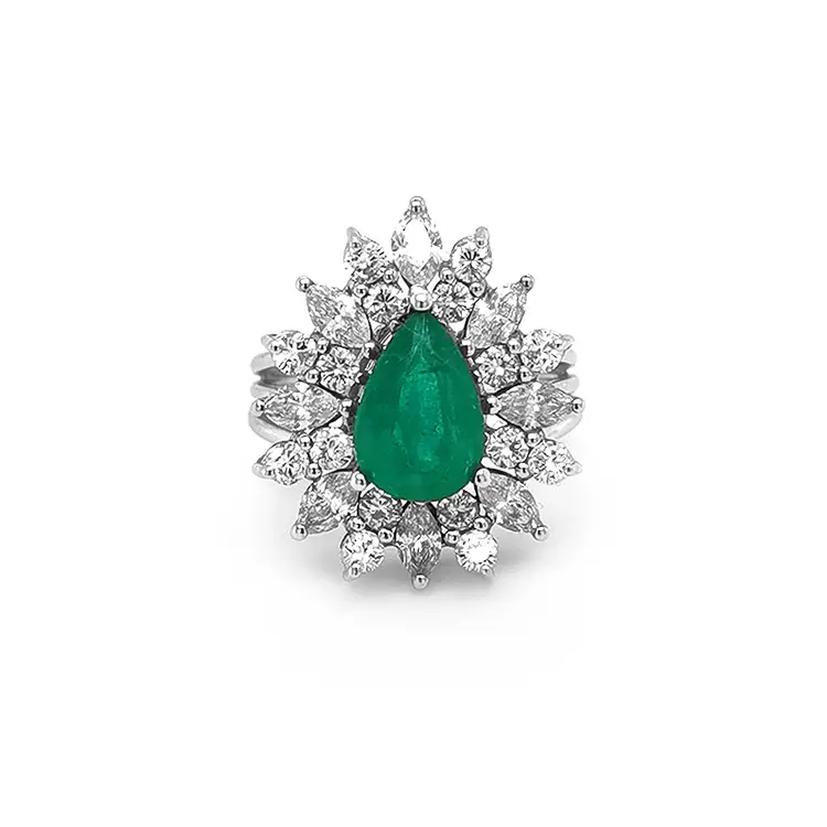 Nhẫn vàng đính ngọc lục bảo và kim cương