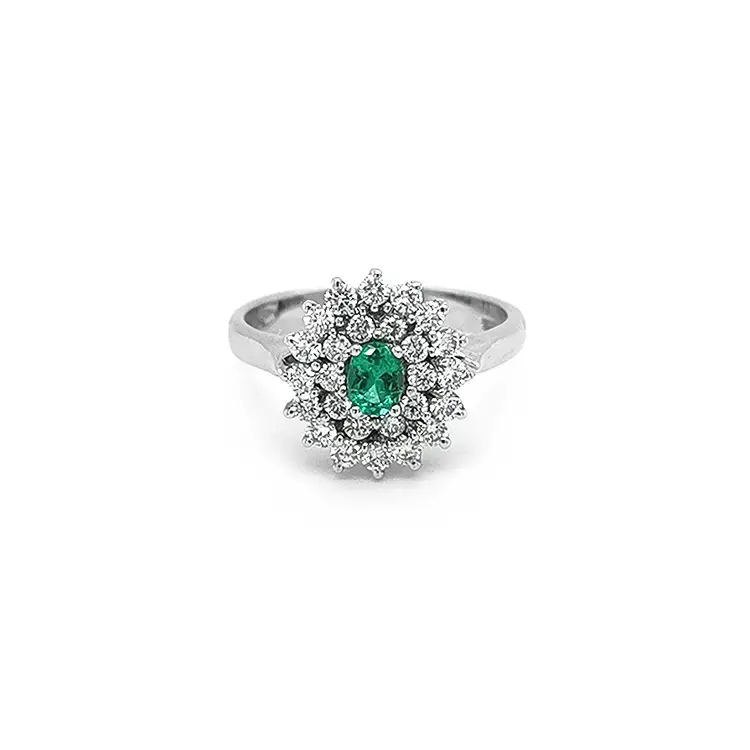 Nhẫn vàng đính ngọc lục bảo và kim cương