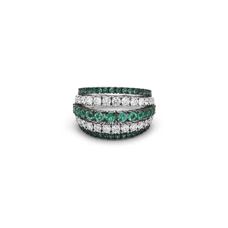 Nhẫn vàng đính ngọc lục bảo và kim cương