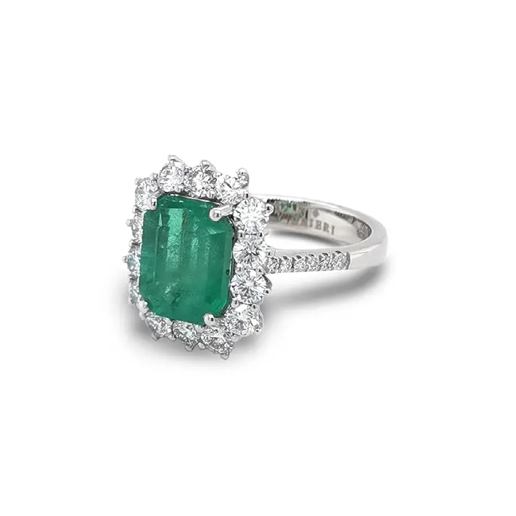 Chiếc nhẫn vàng trắng đính ngọc lục bảo và kim cương của Crieri là sự kết hợp hoàn hảo giữa vẻ đẹp tự nhiên, sự tinh tế và tay nghề thủ công bậc thầy.