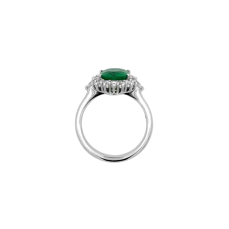 这款 Beny Jewellery 祖母绿钻石戒指展现了自然与工艺的完美融合。采用 18 kt (750/1000) 白金 手工打造,表面高亮抛光,主石为 1.86 克拉 天然祖母绿(Cushion 切割),散发出和谐与新生的象征性绿色光芒。