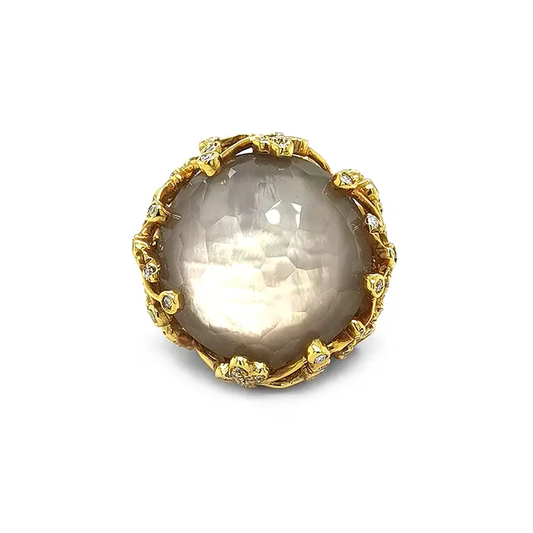 Nhẫn vàng đính ngọc trai, thạch anh và kim cương