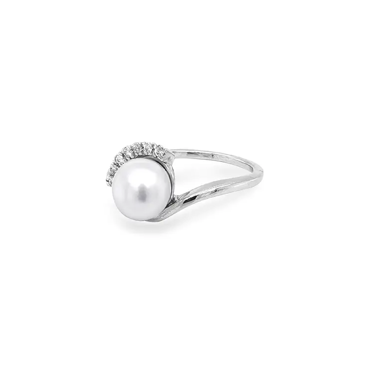 Nhẫn vàng đính ngọc trai và đá zircon