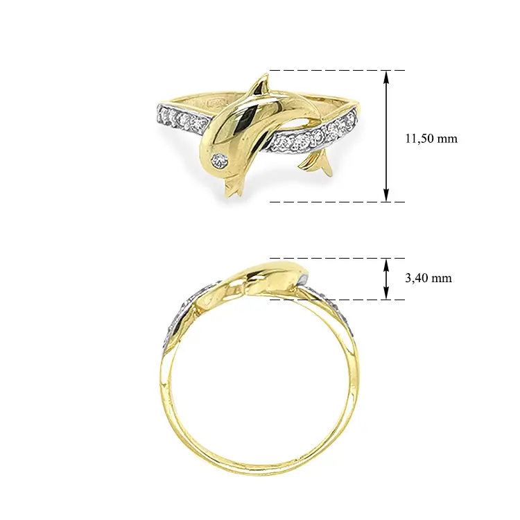 Nhẫn vàng hình cá heo đính đá zircon