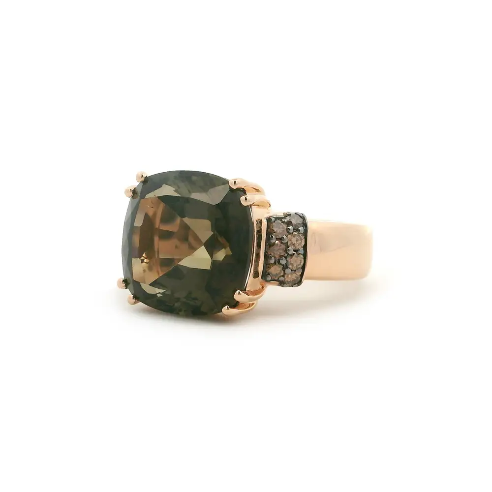 Nhẫn vàng hồng với tourmaline xanh lá và kim cương nâu