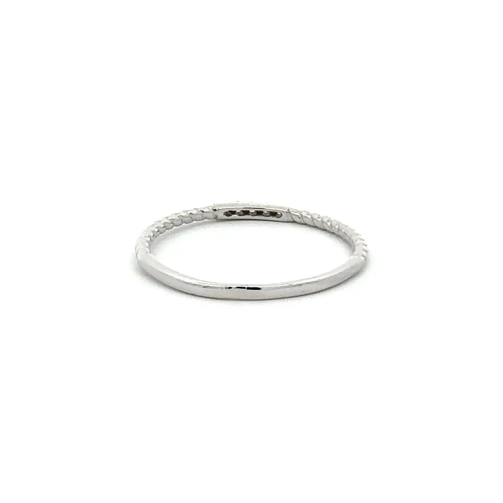 Chiếc nhẫn được đính 5 viên đá zircon kích thước 5 mm, tạo điểm nhấn lấp lánh nhẹ nhàng và tinh tế. Đây là lựa chọn lý tưởng cho những ai yêu thích phong cách tối giản với ánh sáng dịu nhẹ, phù hợp trong mọi hoàn cảnh.