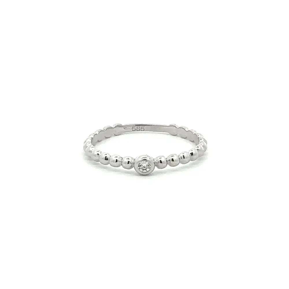 Nhẫn vàng mảnh với zircon ở trung tâm gây ấn tượng với thiết kế tinh giản và nhẹ nhàng, tôn lên vẻ đẹp thanh lịch tự nhiên. Thân nhẫn dạng hạt mang lại nét hiện đại và trẻ trung, trong khi viên zircon ở trung tâm tạo điểm nhấn lấp lánh tinh tế. Phong cách tối giản giúp chiếc nhẫn phù hợp để đeo hằng ngày hoặc kết hợp cùng các nhẫn khác.