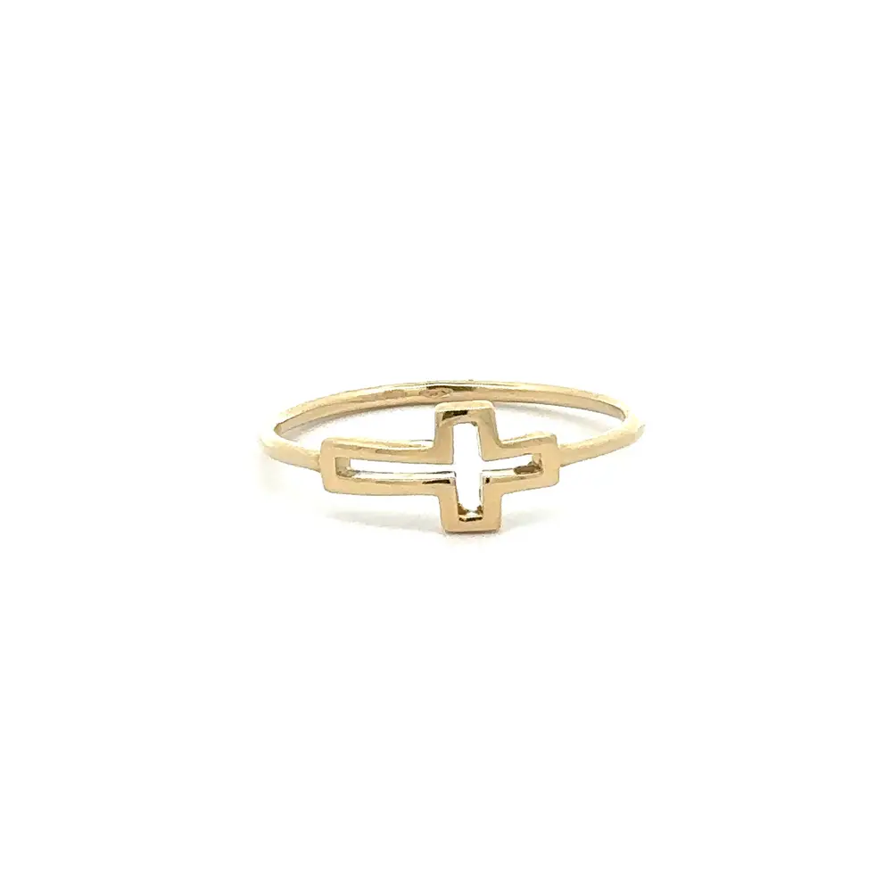 Nhẫn vàng phong cách tối giản với họa tiết thánh giá gây ấn tượng với thiết kế tinh giản và thanh lịch mang vẻ đẹp vượt thời gian. Biểu tượng thánh giá được tạo hình nhẹ nhàng theo phong cách tối giản, giúp chiếc nhẫn dễ dàng kết hợp cùng nhiều phong cách trang phục khác nhau.