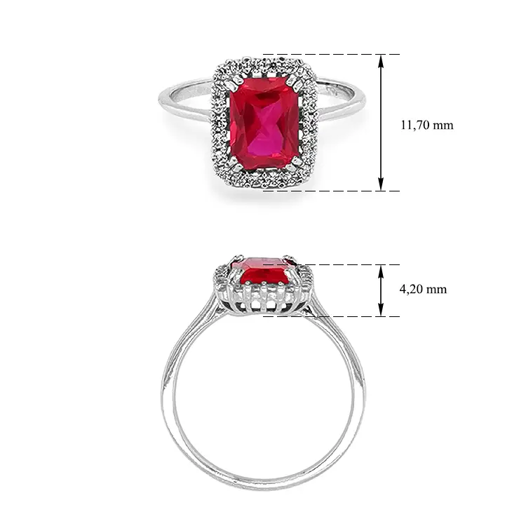 Nhẫn vàng trắng cao cấp gắn ruby và zircon
