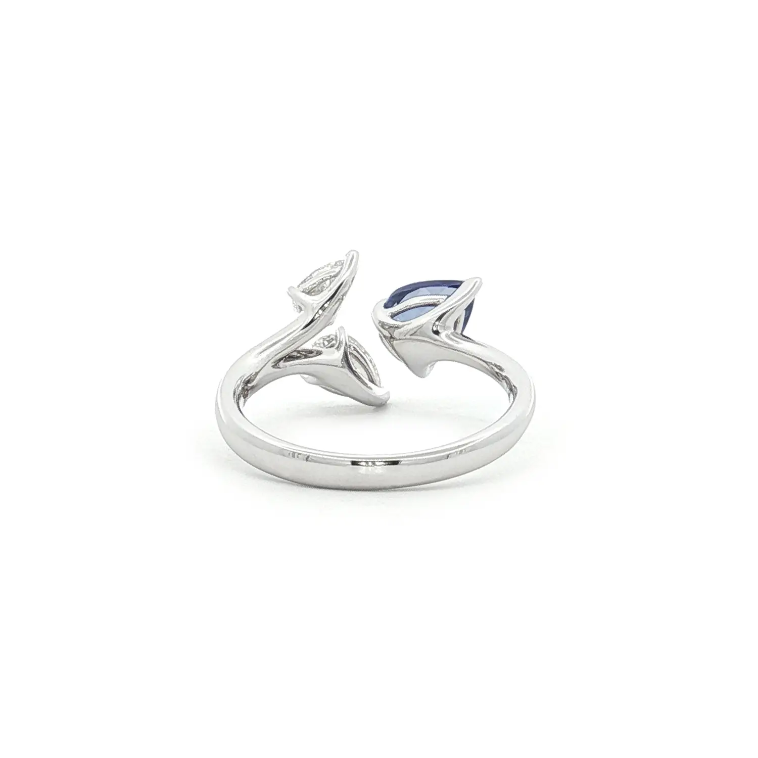 Nhẫn vàng trắng đính đá tanzanite và kim cương dáng giọt nước