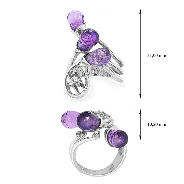 Nhẫn vàng trắng đính đá thạch anh tím