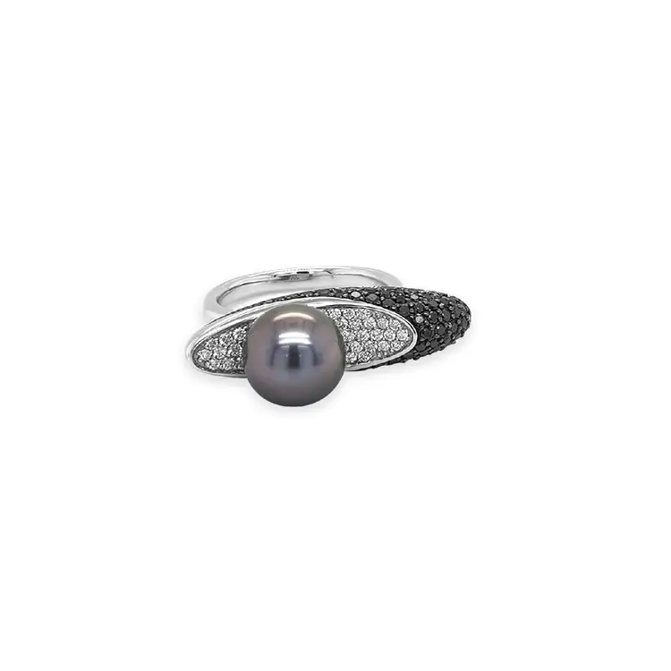 Nhẫn vàng với ngọc trai Tahiti tự nhiên và kim cương