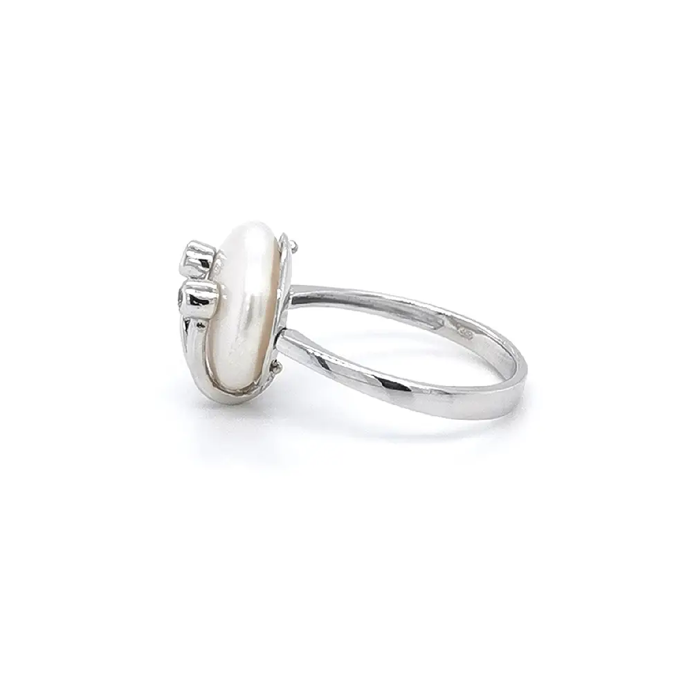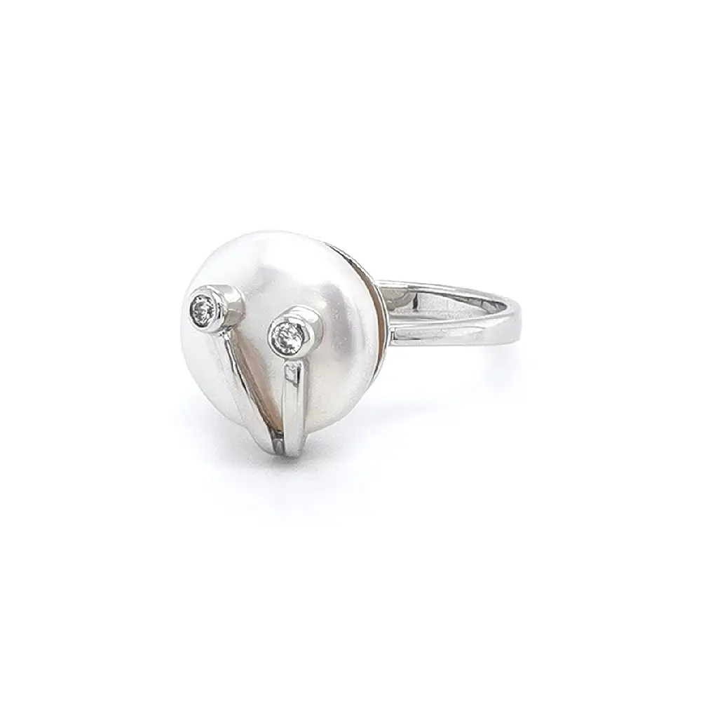 Nhẫn với ngọc trai trắng và vàng trắng