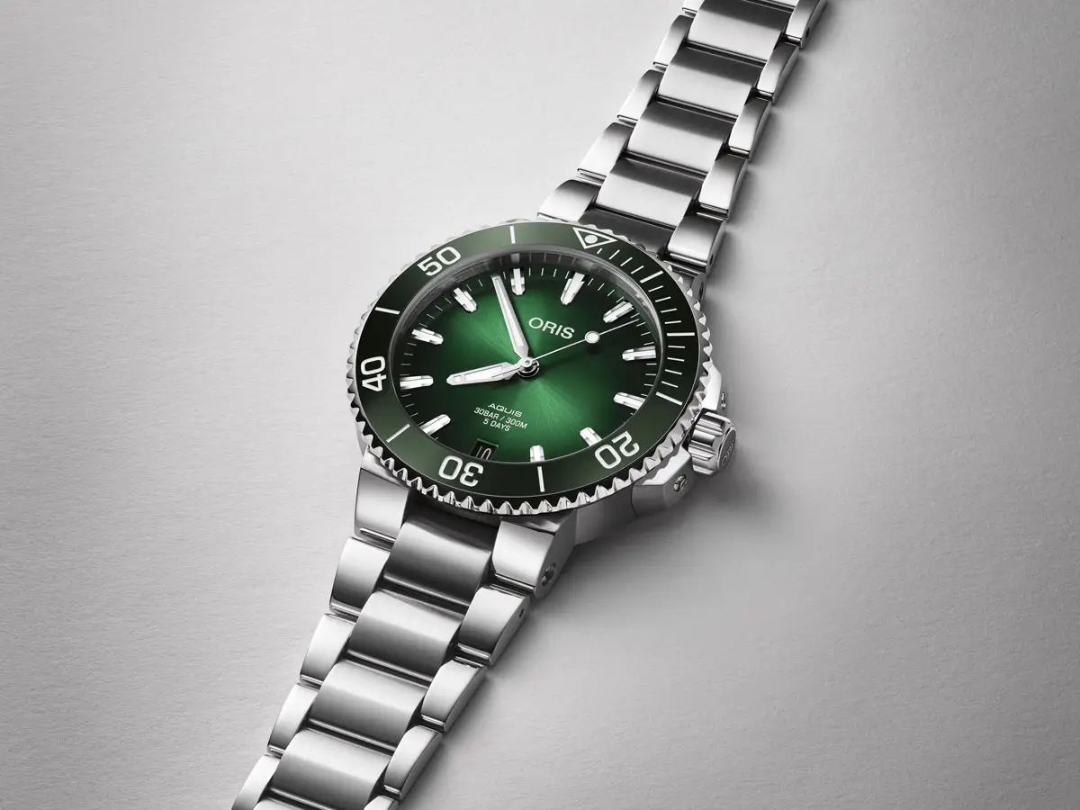 Với khả năng chống nước 300 m (30 bar), núm vặn xoáy và dây thép không gỉ có khóa gập cùng hệ thống thay dây nhanh, Oris Aquis Date Calibre 400 thể hiện sự kết hợp hoàn hảo giữa kỹ thuật hiện đại, độ bền và thiết kế thanh lịch – người bạn đồng hành lý tưởng của quý ông hiện đại, dù trên bờ hay dưới biển.