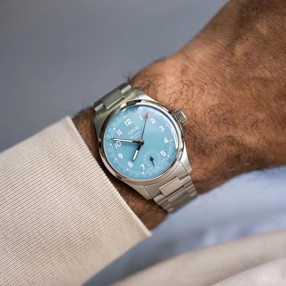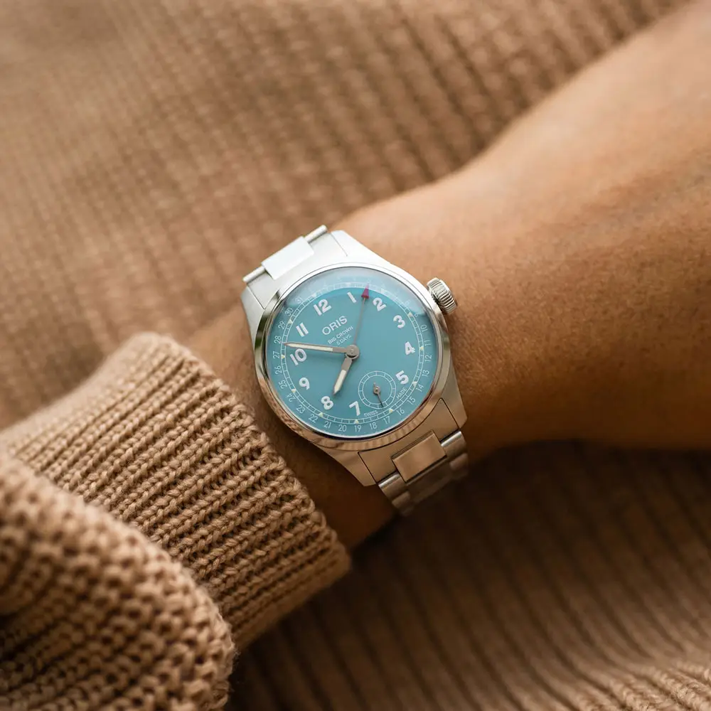 Oris Big Crown là một trong những bộ sưu tập biểu tượng nhất của thương hiệu, ra mắt vào năm 1938 như một mẫu đồng hồ dành cho phi công. Điểm nhấn đặc trưng là núm vặn lớn có răng cưa, được thiết kế để có thể điều chỉnh ngay cả khi đeo găng tay - chi tiết này vẫn gợi nhớ đến nguồn gốc hàng không của bộ sưu tập.