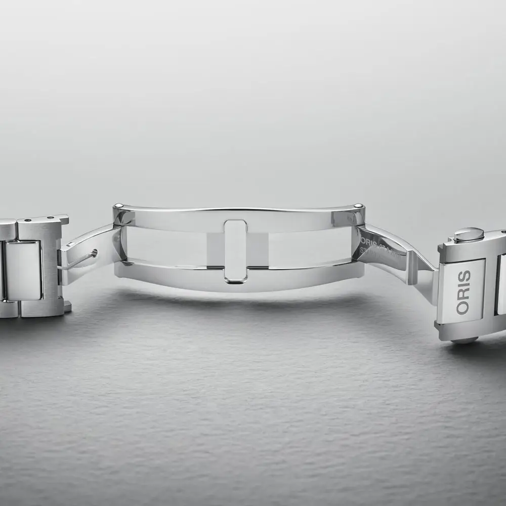 Mẫu đồng hồ được hoàn thiện với dây thép không gỉ dạng mắt H, tôn lên tính linh hoạt – phù hợp cho cả sử dụng hằng ngày lẫn những dịp trang trọng. Khả năng chống nước 50 mét đáp ứng tốt nhu cầu đeo thường xuyên. Oris Big Crown Pointer Date là lựa chọn lý tưởng cho những ai tìm kiếm đồng hồ cơ mang giá trị lịch sử, cá tính riêng và chức năng kim chỉ ngày đặc trưng.